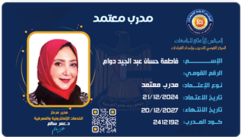 6. أستاذ مساعد بقسم إدارة المنزل والمؤسسات كلية الاقتصاد المنزلي جامعة المنوفية والكلية اعتبارا من (25/6/2019).