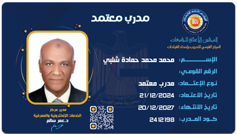 • مدرب محترف و خبير دولي في التنمية البشرية لأعضاء هيئة التدريس والقيادات بالجامعات المصرية .