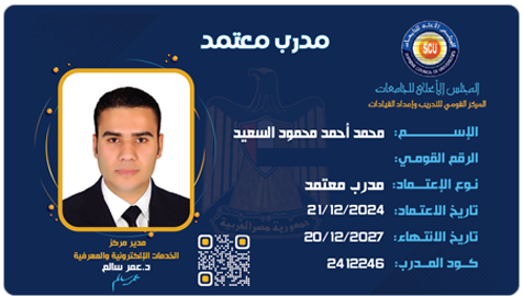 دبلوم الحوكمة ومكافحة الفساد بتقدير ممتاز مع مرتبة الشرف 2024من الأكاديمية الوطنية لمكافحة الفساد - هيئة الرقابة الإدارية-مصر.