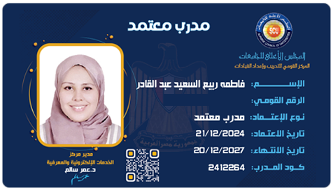 مدربة لغة إنجليزية و مترجمة مستقلة. حاصلة على ليسانس ألسن-جامعة عين شمس. حاصلة على دبلومة الترجمة الفورية. حاصلة على دبلومة تربوي عام تفرغ. حاصلة على ماجستير لغويات تطبيقية و ترجمة.