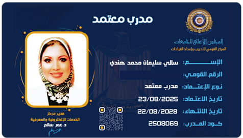 ▪️مدرب معتمد من المجلس الأعلى للجامعات ... خبرة لأكثر من ١٠ سنوات فى مجال التدريب والتأهيل وتنمية القدرات والإدارة مع التركيز على دمج التكنولوجيا والتحول الرقمي فى التعليم القانوني الجامعى .