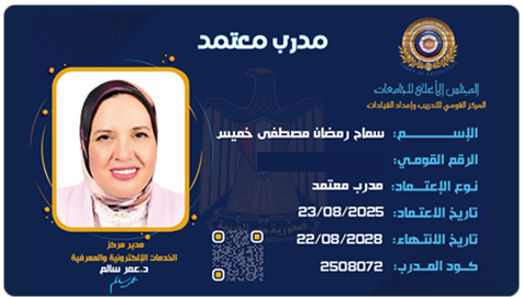 دكتورة سماح رمضان مصطفى خميس استاذ أصول تربيه الطفل المساعد كلية التربية للطفولة المبكرة جامعة المنصورة ووكيل كلية التربية للطفولة المبكرة لشئون خدمة المجتمع وتنمية البيئة وايضا منسق لجنة التوعية المجتمعية بالجامعة