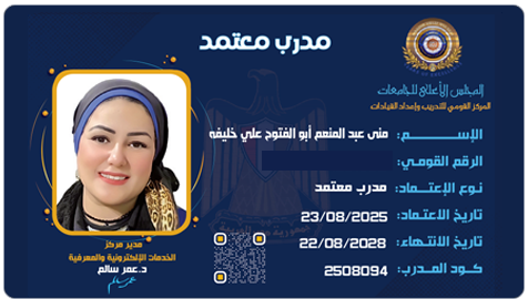- حاصله على دبلومه اعداد القادة المعتمد من الشركة المصرية للاتصالات وشركه هواوى HUAWEI