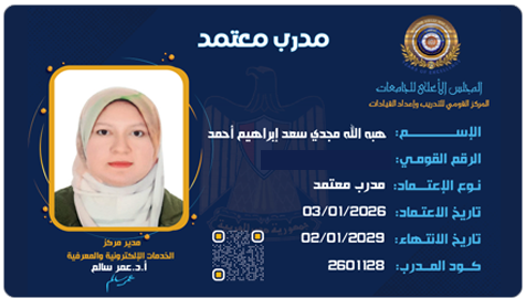 Dr. Hebatallah is also a Certified Digital Transformation Trainer accredited by the Supreme Council of Universities and serves as the Coordinator of the Thinqi e-learning platform, the Disability Support Services Center, and the Egypt Award for Government Excellence Unit at the Faculty of Veterinary Medicine, Matrouh University.