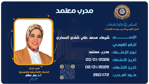حاصلة على دبلوم منتسورى الدولي الذي مكنني من تأسيس برنامج منتسوري بكلية التربية للطفولة المبكرة وتأسيس قاعة منتسوري النموذحية بالكلية وأسهمت منذ عام 2015 من تدريب هذا البرنامج بالكلية وتطوير جيل من المعلمين والقادة التربويين القادرين على تطبيق منهج منتسوري وفق المعايير العالمية مع التركيز على الجوانب العملية داخل بيئات التعلم بجانب حصولي علي بعض الدبلومات الخاصة بالتخاطب والتربية الخاصة