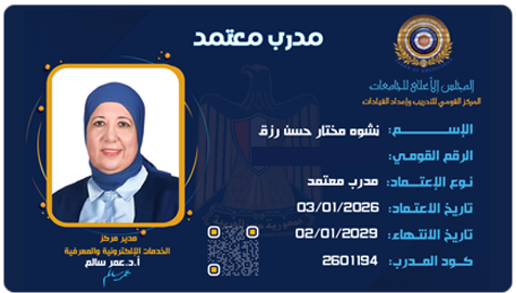 اسمي نشوه مختار حسن رزق حاصلة علي دورة تدريبية لتدريب المدربين TOT من المركز القومي للتدريب واعداد القيادات. والمدرب الدولي المشارك المعتمد من الهيئة الدولية للمدربين المعتمدين IBCT ومدرب بمركز تنمية القدرات والموارد البشرية بجامعة مدينة السادات. أعمل أستاذ البيوتكنولوجيا البيئية بمعهد بحوث الهندسة الوراثية والتكنولوجيا الحيوية-جامعة مدينة السادات، التخصص الدقيق: كيمياء تحليلية. حاصله على الشهادات الآتية من قسم الكيمياء – كلية العلوم- جامعة المنوفية : بكالوريوس علوم- تخصص كيمياء عام 1987، ماجستير في الكيمياء التحليلية عام 1991، دكتوراه في الكيمياء التحليلية عام 1998. تقلدت مناصب ادارية عديده في المعهد بدءا من قائم بعمل رئيس قسم ثم رئيس قسم البيوتكنولوجيا البيئية بالمعهد ثم وكيل المعهد لشئون خدمة المجتمع وتنميه البيئة. كما عملت محرر في مجلة المعهد ومدير وحدة ضمان الجودة والتطوير المستمر بالمعهد. اقوم بتدريس المقرارات الخاصة بالتحاليل الكيميائية والتلوث البيئي بالمعهد. أشرفت علي العديد من الرسائل العلمية في مجال البيئة، ولدي العديد من المشروعات ورسائل الماجستير والدكتوراه التي مازلت أقوم بالاشراف عليها. قمت بتحكيم العديد من رسائل الماجستير والدكتوراه في بعض الجامعات. ومنتدبه للتدريس في كلية الطب البيطري-جامعة مدينة السادات كما انني أشغل منصب نائب مدير مركز خدمه الطلاب ذوي الاعاقه بالجامعه حيث تقدم الجامعه خدماتها للطلاب ذوي الاعاقه منذ عام2022 حتي الآن. كما أنني مراجع خارجي معتمد من الهيئة القومية لضمان الجودة والاعتماد. وشاركت في زيارات الجودة للاعتماد المؤسسي والبرامجي.